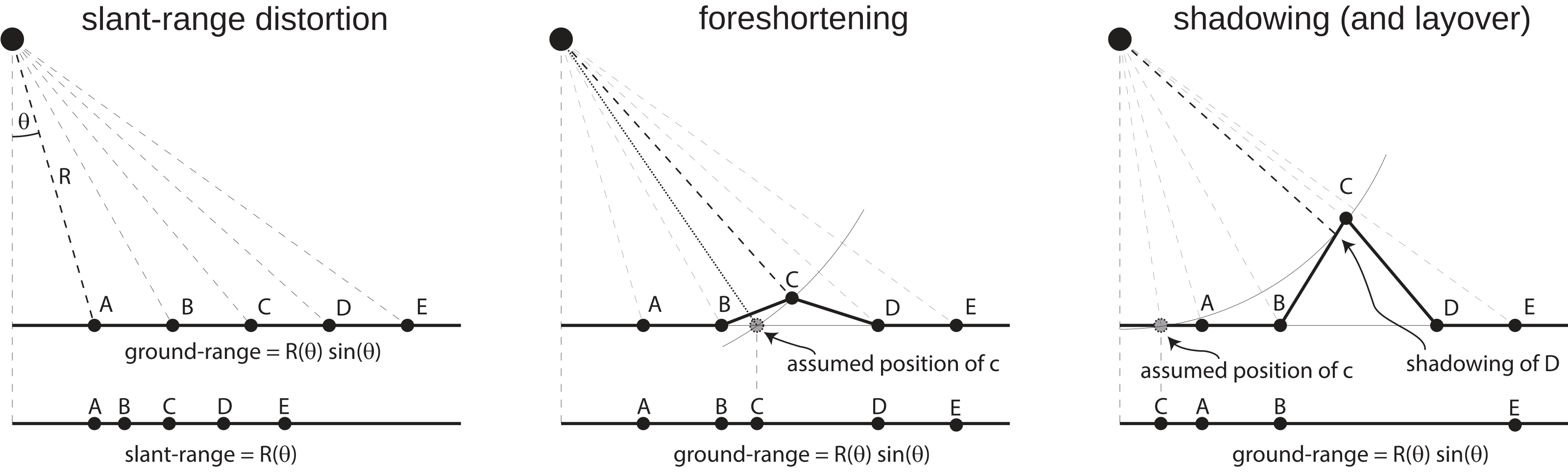 Figure 3: Side Looking radar distortions (script Chapter 4).